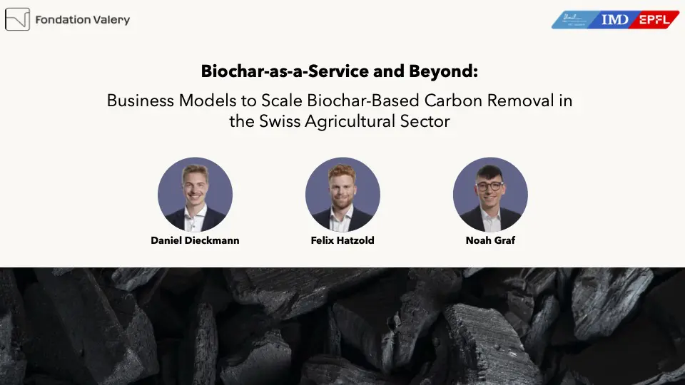 Scaling biochar-based carbon removal in the agricultural sector requires solutions that work with farmers’ realities rather than against them. This project demonstrates that while service-based business models struggle under operational and economic constraints, decentralized pyrolysis heaters integrated into farm heating systems offer a viable pathway. By combining on-farm heat generation, durable carbon sequestration, and a targeted financing and certification approach, this model delivers benefits for all parties involved and helps overcome key barriers currently preventing the market from scaling. The outcome of this Transformative Project is a concrete, investment-ready proposal for Fondation Valery, a Swiss foundation and philanthropic venture partner, that enables the effective scaling of biochar-based carbon removal in the Swiss agricultural sector, strengthens farmer resilience, ensures high-integrity carbon removal, and can be replicated beyond Switzerland, thereby potentially unlocking millions of tonnes of CO₂ sequestration.